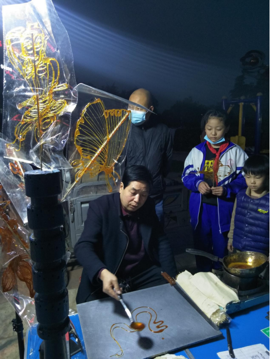 兰林坡在作糖画腾龙画 武建华摄